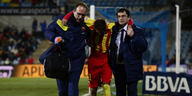 Barceloana, Neymar, saat dibopoh keluar lapangan karena mendekap cedera