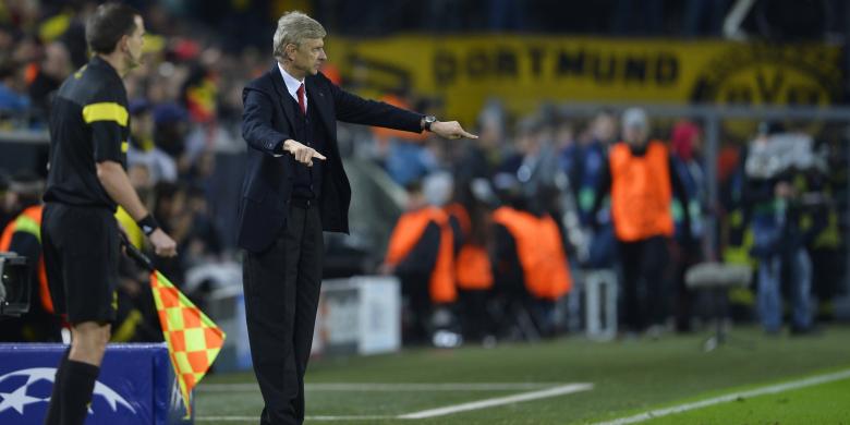 Pelatih Arsenal Arsene Wenger pada pertandingan keempat fase grup Liga Champions melawan Borussia Dortmund, di Signal Iduna Park, Rabu (6/11/2013).